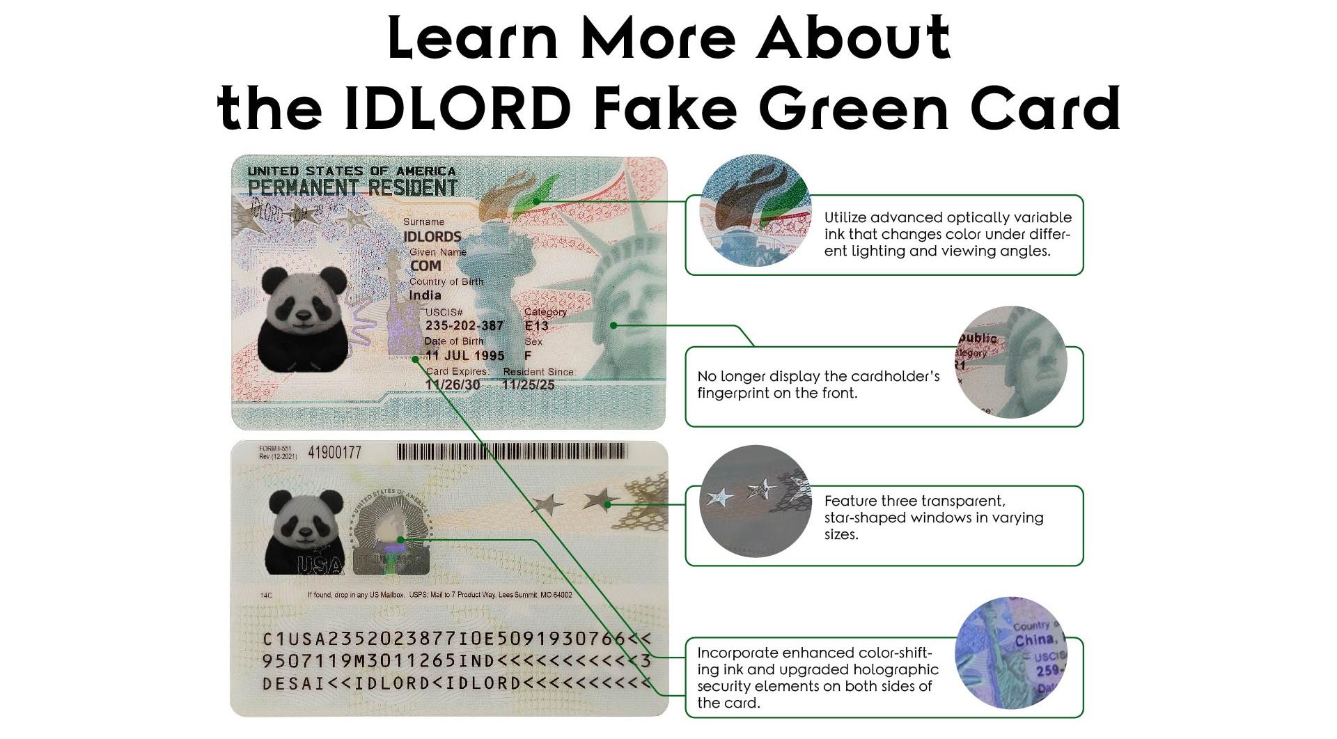 We understand that when it comes to fake IDs, quality matters. That’s why our Green Cards are crafted with precision using the latest technology, ensuring every detail matches the real thing. From the proper font and holograms to accurate card dimensions, our fake IDs are built to impress.