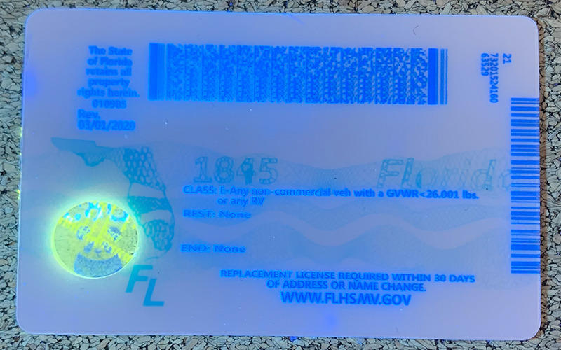 06Fluorescent OverlayWhen it comes to replicating the Sunshine State’s vibrant energy, our fake Florida IDs get it right. Designed with an eye for detail, each Florida ID card mirrors the latest design and security features, from the state’s iconic palm tree watermark to its unique holograms. If you’re looking for a top-tier fake Florida ID that fits right in, you’ve come to the right place!